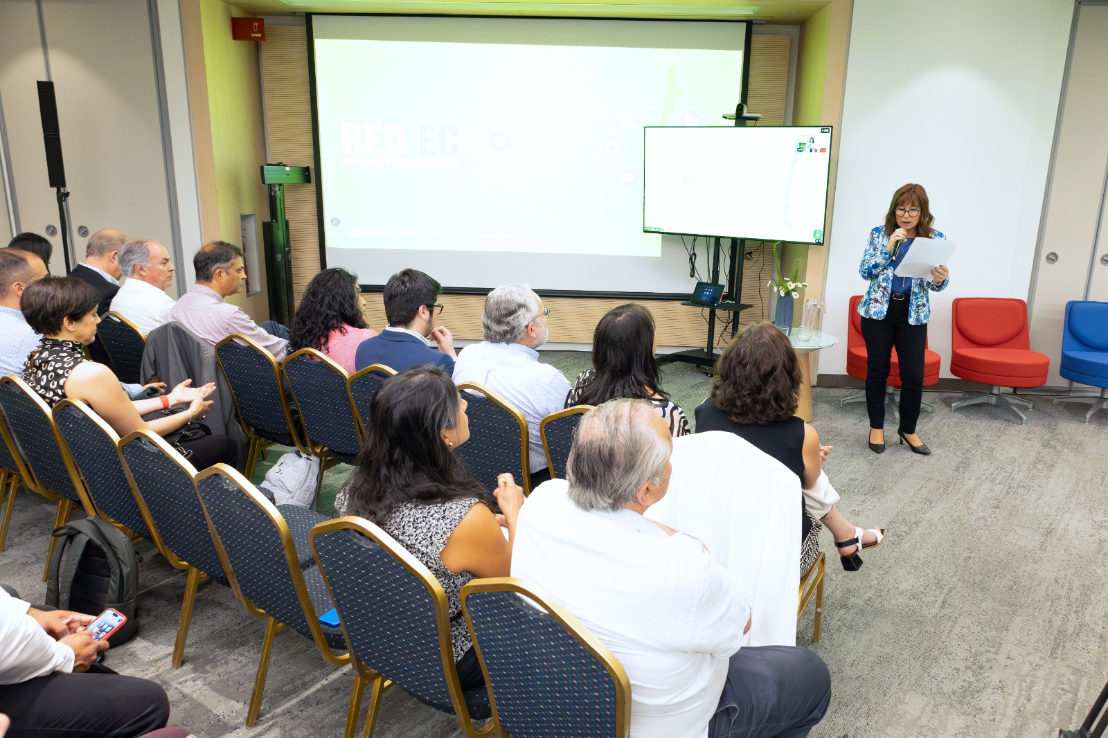 En el encuentro moderado por Katherine Martínez y realizado en la Cámara Chilena de la Construcción (CChC), autoridades y representantes del sector destacaron los hitos alcanzados durante el primer año de ejecución de este ambicioso plan financiado por el Banco Interamericano de Desarrollo (BID) y liderado por Corfo, Construye2025, CDT, el Gobierno de Santiago y la Cámara Chilena de la Construcción (CChC).